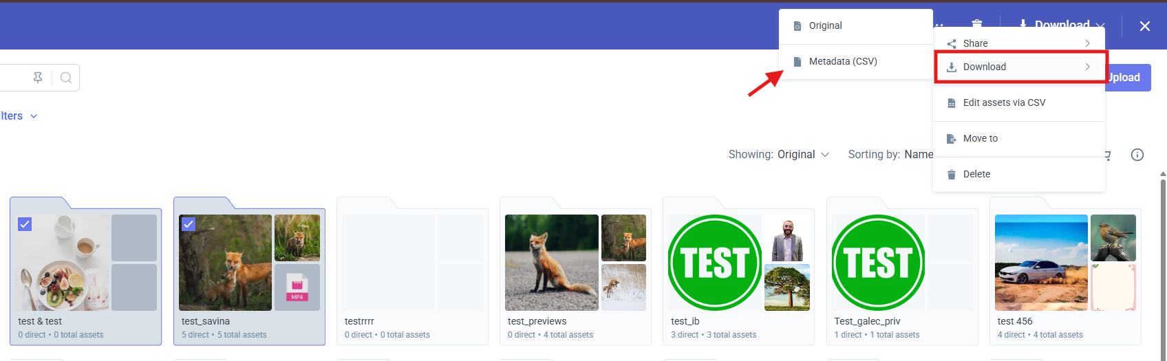 Select Download → Metadata (CSV).