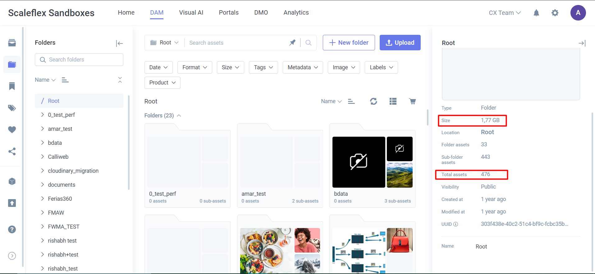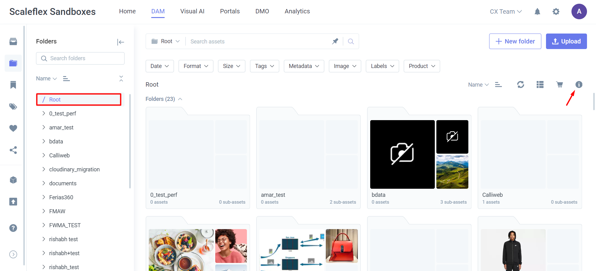 Clicking the info icon will display detailed information about your assets, including their total filesize and the total count of assets in that folder.