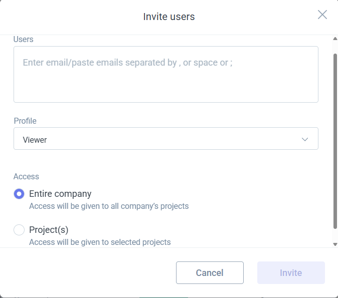 Access scope (entire company or specific projects)