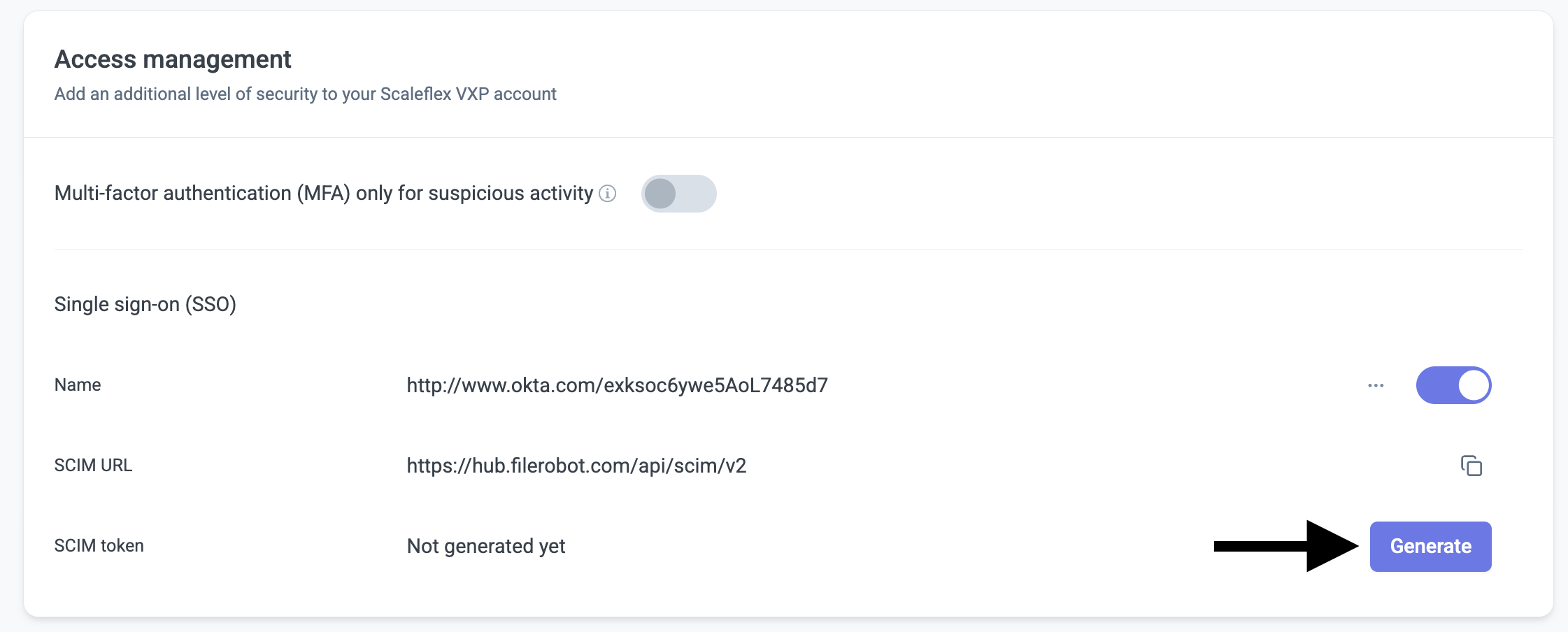 SCIM 2.0 is a protocol designed for secure provisioning and lifecycle managements of users and groups between systems. In this article, we will go over the configuration of SCIM provisioning between Okta and the Scaleflex VXP.