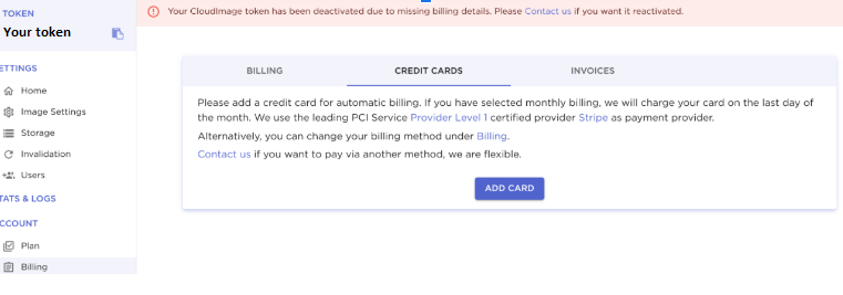 Token gets deactivated when FREE users, who have not added billing details, continuously overused the CDN Traffic and Image Cache allowances.
