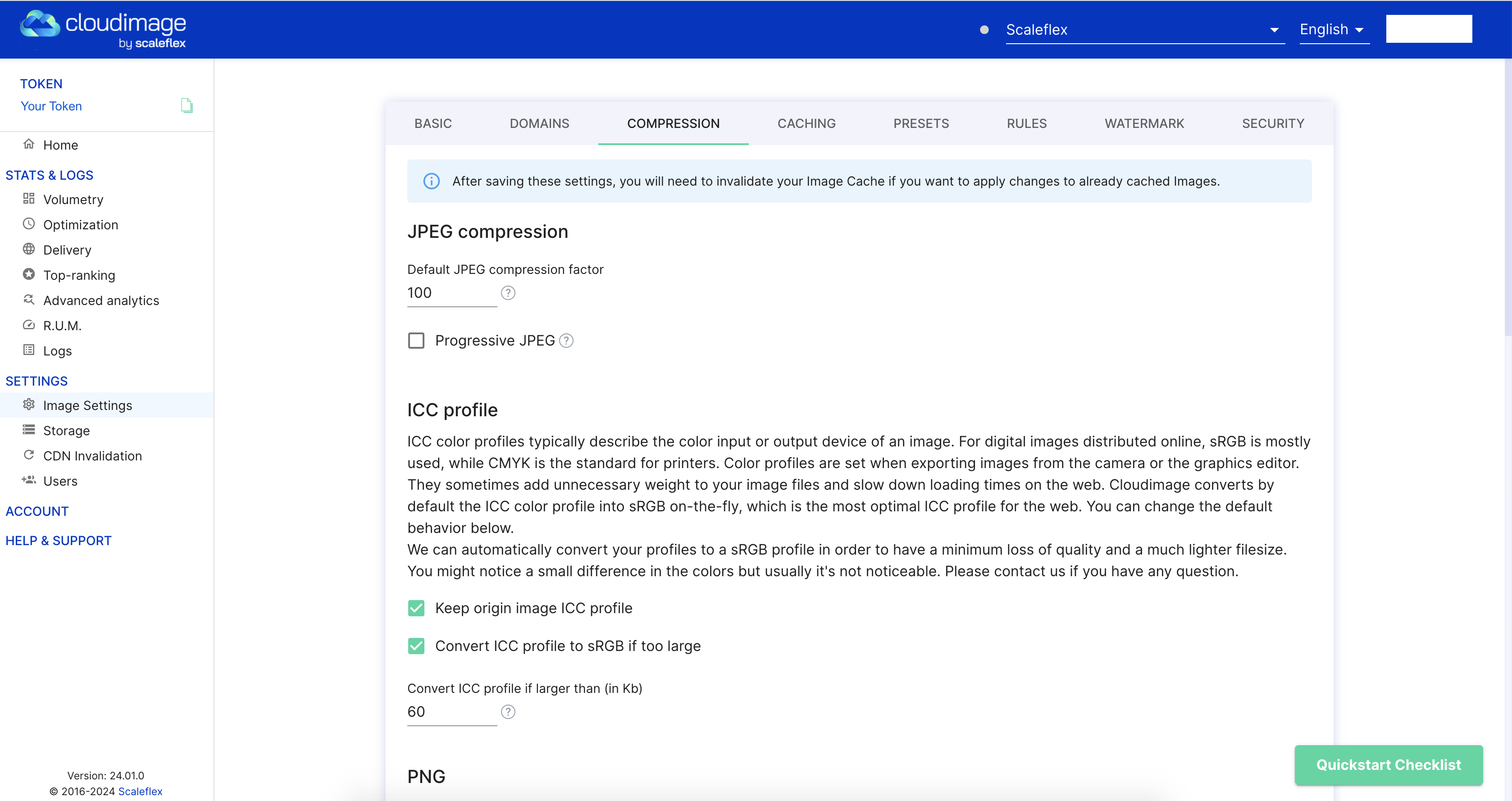 - "PNG":- PNG Lossy compression is an algorithm designed to reduce the size of your PNGs while keeping visual quality. You can enable this feature by checking the "Enable PNG lossy compression'.