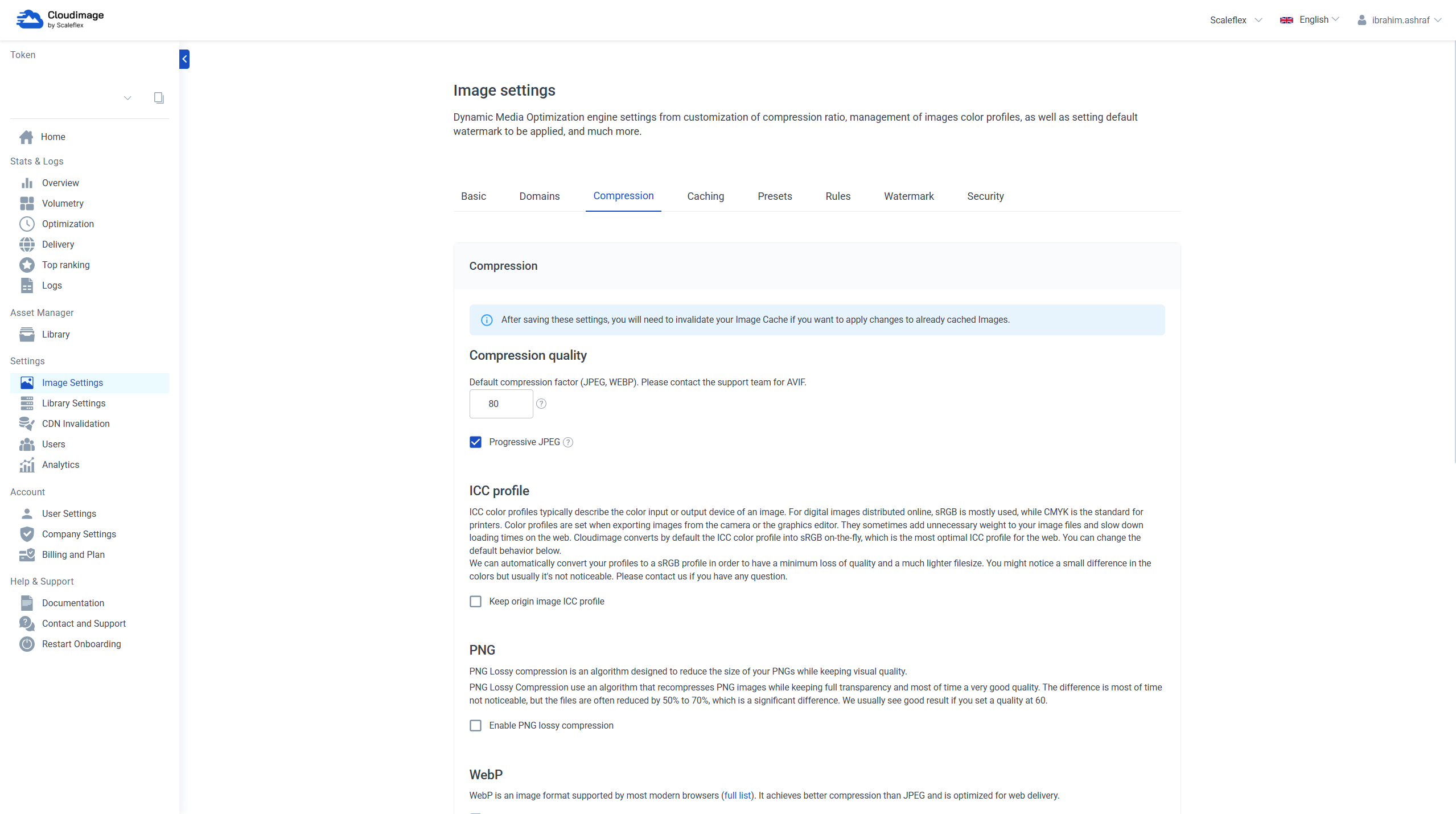 Step 1 - In the Cloudimage Admin panel, select Image Settings from the left menu.